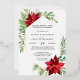 Theme Parties' botanical Christmas gold foil wedding invitation design features elegant watercolor greenery paired with the watercolor poinsettias and gold foil botanical accents and is set in a gold geometric frame. The typography is traditional serif in varying weights. It's the perfect invitation for your green, red, and gold Christmas season wedding! #HolidayWedding #ChristmasWedding