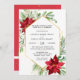 Theme Parties' botanical Christmas wedding invitation design features elegant watercolor greenery paired with the watercolor poinsettias and gold botanical accents and is set in a gold geometric frame. The typography is traditional serif in varying weights. It's the perfect invitation for your green, red, and gold Christmas season wedding! #HolidayWedding #ChristmasWedding #Wedding