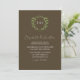 Wedding collection with earth tones of green and dark brown. A gold geometric monogram crest surrounded by botanical leaves.