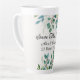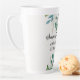 Elegant Save the Date Latte Mug with Beautiful Green Leaves.