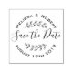 Create a perfect modern touch with this personalized Save the Date rubber stamp with circular lettering and hand-drawn shaded leaves wreath. Please note, you may need to adjust the information you enter by adding or deleting some characters or spaces, to make the text properly aligned.
