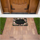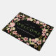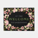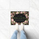 This modern and stylish welcome mat features customization options for adding a name and year established. The mat features a floral botanical wreath graphic.