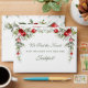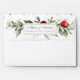 Cette enveloppe de billet de loterie a un extérieur blanc avec un design de vacances à la baie fleurie. L'avant dit "Nous avons noué le noeud, maintenant nous espérons que vous gagnerez le jackpot !" Le rabat extérieur dans une police serif tout-casquette verte avec une fine bordure verte entourant les noms. Cette enveloppe coordonne avec les autres produits de la Collection Mariage de Noël pour le Berry d'hiver.