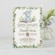 Baby shower d'invitation illustrant l'illustration de greens et de feuillages rustiques aquarelle et un adorable petit éléphant