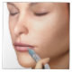A front view of a female face that is being injected with a Botox syringe into the upper lip. | MedicalRF.com | AssetID: 82155278