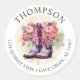Ces étiquettes d'adresse de retour impressionnantes avec une photo d'aquarelle fabuleuse de bottes et de fleurs de cowgirl entourées de votre nom de famille et de votre adresse dans une police serif casquette serait parfait pour tous vos besoins d'envoi! Il est si facile de les faire les vôtres. Sélectionnez Personnalisez ce modèle et tapez votre nom de famille et votre adresse. C'est super facile !