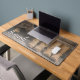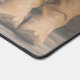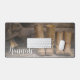 Ce tapis de bureau rustique et amusant comprend deux bottes de cowboy contre un mur de cabine en rondins. Pour les amateurs d'occident ou de cheval. Créé par Simply Farmhouse Press ; photo de Melanie Mauer sur Unsplash.