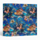 This gorgeous tropical underwater design features bottlenose dolphins swimming in the ocean around a coral reef with colourful little tropical fish.