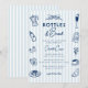 Celebrate your little one with a stylish Bottles & Brunch baby shower invitation that blends preppy charm with playful personality. This blue striped baby shower invitation features hand-drawn doodle illustrations including champagne flutes, baby bottles, strawberries, croissants, coffee, and sweet brunch-inspired details — perfect for a morning or midday celebration.