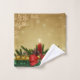 Arc rouge, bougie, branches de pins et flocons d'or.
