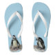 Ces tongs présentent d'adorables pingouins africains debout sur une corniche rocheuse contre un arrière - plan bleu. Les pingouins sont des oiseaux aquatiques sans vol dont les ailes sont devenues des palmes. Chacune a une bande noire et des taches noires sur la poitrine. Le motif de taches est unique pour chaque oiseau, tout comme les empreintes digitales humaines. Ils ont des glandes roses au-dessus des yeux et des pieds roses et noirs.