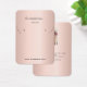 Une carte d'affichage pour vos boucles d'oreille ou bijoux faits main. Une arrière - plan rose d'or féminine, texte noir. Personnalisez et ajoutez votre nom et vos coordonnées sur le devant. Retour : ajoutez votre propre photo au dos et utilisez l'occasion pour raconter à vos clients l'histoire de votre marque. Supprimer si non voulu. C’est un modèle, donc vous devez le couper comme vous le voulez