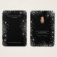Une carte d'affichage pour vos boucles d'oreille ou bijoux faits main. Un arrière - plan noir classique, texte blanc.Décoré avec de la poussière de parties scintillant fausse argent. Personnalisez et ajoutez votre nom et vos coordonnées sur le devant. Retour : ajoutez votre photo de profil au dos et utilisez l'occasion pour raconter à vos clients l'histoire de votre marque. Supprimer si non voulu.