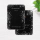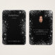 Une carte d'affichage pour vos boucles d'oreille ou bijoux faits main. Un arrière - plan noir classique, texte blanc.Décoré avec de la poussière de parties scintillant fausse argent. Personnalisez et ajoutez votre nom et vos coordonnées sur le devant.