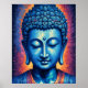 Bouddha Bleu Poster d'Art moderne Pixel Abstrait