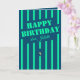Une magnifique carte de voeux minimaliste bleu foncé ornée de rayures turquoises néon et d'une bougie. Cette carte peut être personnalisée avec le nom du célébrant d'anniversaire.