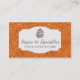 Ces cartes de visite brillent avec un arrière - plan orange de parties scintillantes. ** Notez svp, cet arrière - plan est un effet imprimé seulement. Aucune parties scintillantes réelle n'est sur la carte ** sur l'arrière - plan est un cadre décoratif. À l'intérieur du cadre est un petit gâteau que vous pouvez garder ou remplacer par votre propre image. Il y a pièce pour votre nom, et un tagline et le dos a la pièce pour votre nom, fonction et détails de contact. Ce sont les cartes de visite parfaits pour des décorateurs, des boulangeries, et des traiteurs de gâteau.