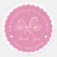 Boulangerie autocollant d'ustensile d'entreprise avec un arrière - plan rose et deux coeurs blancs.