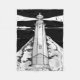 A black and white illustration of the lighthouse at the end of the boulder bank in Nelson, New Zealand. This lighthouse is at the cut near and has haulashore island in the background.