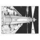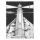 A black and white illustration of the lighthouse at the end of the boulder bank in Nelson, New Zealand. This lighthouse is at the cut near and has haulashore island in the background.
