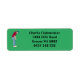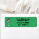 Un golfeur vert, portant un casquette, une chemise rouge et un pantalon bleu, mettant une balle de golf dans un trou design partie l'étiquette d'adresse de retour. Customisez le texte.