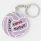 Porte-clés de thème de boule de net-ball avec la couleur et le nom faits sur commande. Idées personnalisées de cadeau de net-ball pour des joueurs et des fans.