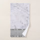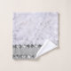 Sur cet élégant ensemble de serviettes se trouve un élégant motif en marbre argenté avec une bordure métallique en argent sur le fond avec des diamants en argent qui bordent la bordure pour plus de glamour. Vibes chic glam pour égayer n'importe quel décor de salle de bain.