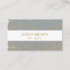 Arrière - plan gris avec des taches d'or élégant carte de visite. Bande blanche sur le devant avec police décorative et élégante, sur le côté arrière les renseignements personnels sont prêts pour une personnalisation facile