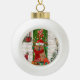 Chow Chow Dog assis à l'extérieur de la maison décorée avec la couronne de Noël, sapin de Noël est une idée cadeau de Noël parfait pour les amoureux de les chiens.