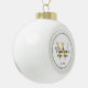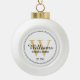 Monogramme personnalisé nouvel ornement de Noël en céramique dorée. La bordure pointillée rappelle le milgrain, qui est une technique de détail de bijoux souvent utilisée pour les anneaux fiançailles et mariages.