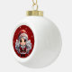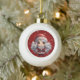 Ceramic ball with three design choices (Christmas Tree, Bell, Poinsettia); adorned with gold hanger and gold hanging string
