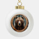 Portrait d'ours frappant, encadré d'une bordure circulaire en bois. La fourrure de l'ours se décline dans les tons marron, soulignant son aspect majestueux. Ses yeux percés attirent les spectateurs, tandis que la toile de fond comprend des bouleaux élancés, renforçant le cadre naturel et boisé. La combinaison de l'ours et de la charpente en bois crée un visuel captivant qui mêle la faune à une touche artistique.