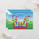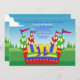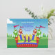 Une maison rebond est un plaisir pour les enfants et aussi cette invitation colorée pour une fête d'anniversaire. La maison rebond est installée à l'extérieur avec deux silhouettes pour enfants. Adapté à l'un ou l'autre sexe.L'invitation est facile à customiser avec votre libellé, police, couleur de police et choix de six types de papier.