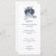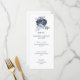 Cette carte de menu mariage simple et élégante présente des fleurs et des feuilles bleus et épais et poussiéreux. Nous avons utilisé l'art via LABFcreations.