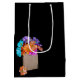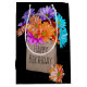 Bouquet de marguerite coloré dans un sac en papier marron sur noir pour anniversaire général.
