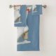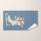 Cette serviette de bain comprend un linge de toilette, une serviette de toilette et une serviette de bain avec un patinage rempli d'un bouquet de Noël et un cadeau sur un arrière - plan de couleur bleu d'hiver. Vous pouvez acheter l'ensemble ou acheter les objets individuellement. Cela fera ressortir votre salle de bain !