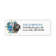 Le côté gauche de ces étiquettes d'adresse de retour présente une belle aquarelle d'un chien Schnauzer géant émergeant d'un bouquet de fleurs bleues et violettes. Votre texte personnalisé est en bleu et noir à droite.