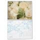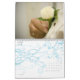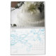 A customisable calendar to celebrate the year of your wedding. The front page features the unique "Bouquet Range" from Studio LUMIERE with a cream flowers set in the background in this photographic imagery with an overlay of the bride holding her bouquet of roses and foliage. Caligraphy script text with the word "Wedding" is watermarked in the base of the image. Text is customisable for the dates that the calendar commences and your names. Each month features one of the key details that make weddings beautiful at every sensory level: the flowers.