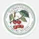 Personalize this elegant cherry food product label with your Product Name, (Producer Name if desired) City & State, Net weight, Declaration of Sustainability & Origin, and Ingredients List. Vintage cherries illustration.