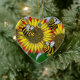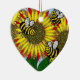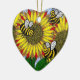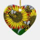 Un ornement de vacances avec trois bourdons drôles bourdonnant autour de grands tournesols jaunes et oranges lumineux.