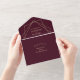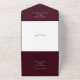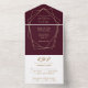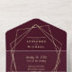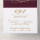 Le mariage doré bordeaux et or tout en une seule invitation est une belle et élégante façon d'annoncer vos nouveautés. L'invitation présente un design moderne avec un arrière - plan bordeaux foncé, un cadre doré et des accents dorés. Le texte est personnalisable avec vos noms, date mariage et autres détails. L'invitation comprend également une carte postale perforée RSVP, afin que vos invités puissent facilement RSVP sans avoir à acheter une enveloppe. Cette invitation est parfaite pour les couples qui recherchent une façon élégante et formelle d'invitation à leur mariage. C'est également une bonne option pour les couples à la recherche d'une invitation unique et élégante.