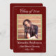 Cette Elégante et gracieuse faire-part de remise de diplômes ou de remise de diplômes de Bourgogne est parfaite pour tous les diplômés de l'université, du lycée ou de tous les niveaux. Design tendance avec arrière - plan tourbillon noir profond avec cadre photo pour votre meilleure photo. Très simple à personnaliser avec vos informations. Pas besoin de photo, il suffit d'ajouter vos informations et photo numérique. Invitation de graduation de style moderne ou classique pour hommes ou femmes.