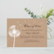Un grand dandelion, avec des graines flottantes, décore cette invitation sur un arrière - plan burlap illustré. Il est montré sur le papier de base; cependant, je recommande le poids et la texture du papier de lin, pour améliorer ce look de burlap. Si d'autres éléments sont nécessaires pour vous coordonner avec cette invitation, contactez-nous à l'adresse prettyfancyinvites@gmail.com avec votre demande.