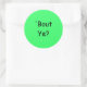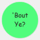 'Bout Ye? (Northern Irish for: How are Ye Doing?), Round Stickers with Black-lettering on Green Background.