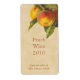 Un étiquette pour les viticulteurs artisanaux avec une illustration de pêches et de feuilles sur un arrière - plan beige, d'une peinture vintage de Catharina ou Catherine Klein, née en 1861.