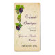 Une vigne avec quatre grappes de raisins de vin s'alignent le long du côté gauche de ce étiquette. La vigne serpente derrière le raisin contre un arrière - plan parchemin. Un grand étiquette à utiliser sur un cadeau spécial de vin ou à un mariage. Disponible avec des produits assortis ainsi qu'une orientation horizontale.