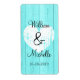 Étiquettes de bouteille de vin mariage bleu turquoise. Étiquettes de vin personnalisés avec panneau en bois patiné et coeur vintage. Typographie de script stylish pour les noms de mariée et mariée. Utilisez comme décor de table classe ou merci pour les invités à la fête. Inclut le nom ou le monogramme plus la date du mariage. Design chic et rustique de campagne romantique. A conseiller également aux mariages de plage.