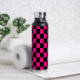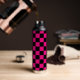 Bouteille D'eau à damiers carré rose chaud noir rétro géométrique