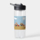 Bouteille d'eau avec un design de camions et de fleurs sur un ciel de conception abeille en bleu avec un soleil brillant et des nuages/ Le fond est bronzé. Le nom sur la bouteille peut être changé. Merci à Creative Fabrica pour certains des éléments du design.