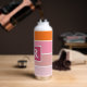 Bouteille d'eau avec de larges rayures de couleurs douces à roses et oranges avec votre Monogramme.